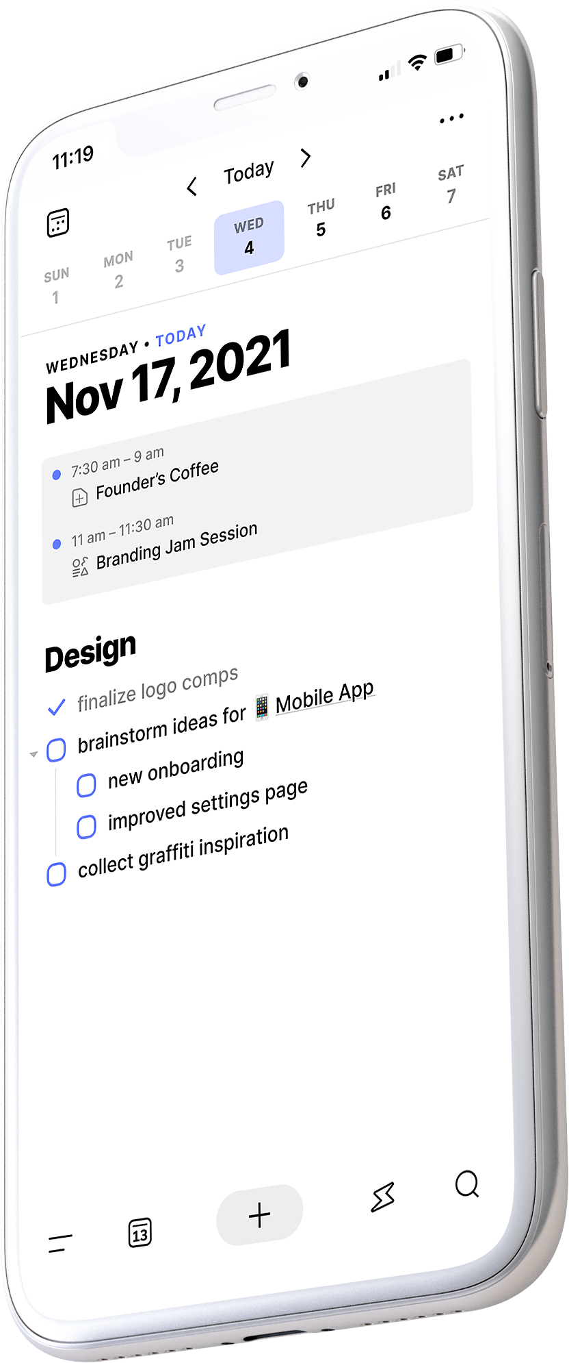 Use Clover’s Daily Notes feature to plan tasks and take notes throughout your day. Incomplete tasks automatically rollover to the next day.